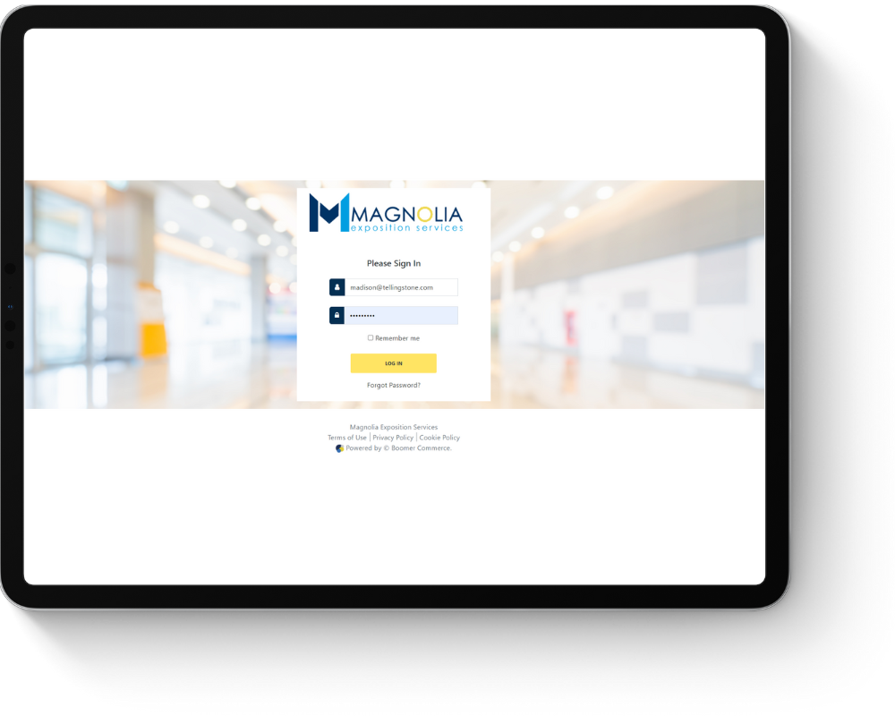 Accessed via an email campaign you send or a link you place on your website, the Storefront homepage provides a branded and secure entry point for the exhibitor.